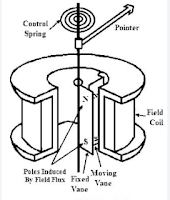 In a PMMC meter, a coil of wire is placed between two permanent magnets. This arrangement creates a strong magnetic field. According to Faraday's law of electromagnetic induction, when an electric current passes through a wire in the presence of a magnetic field, the wire develops a force and this force causes the coil to move, and Fleming's law of bending governs how it will go away.